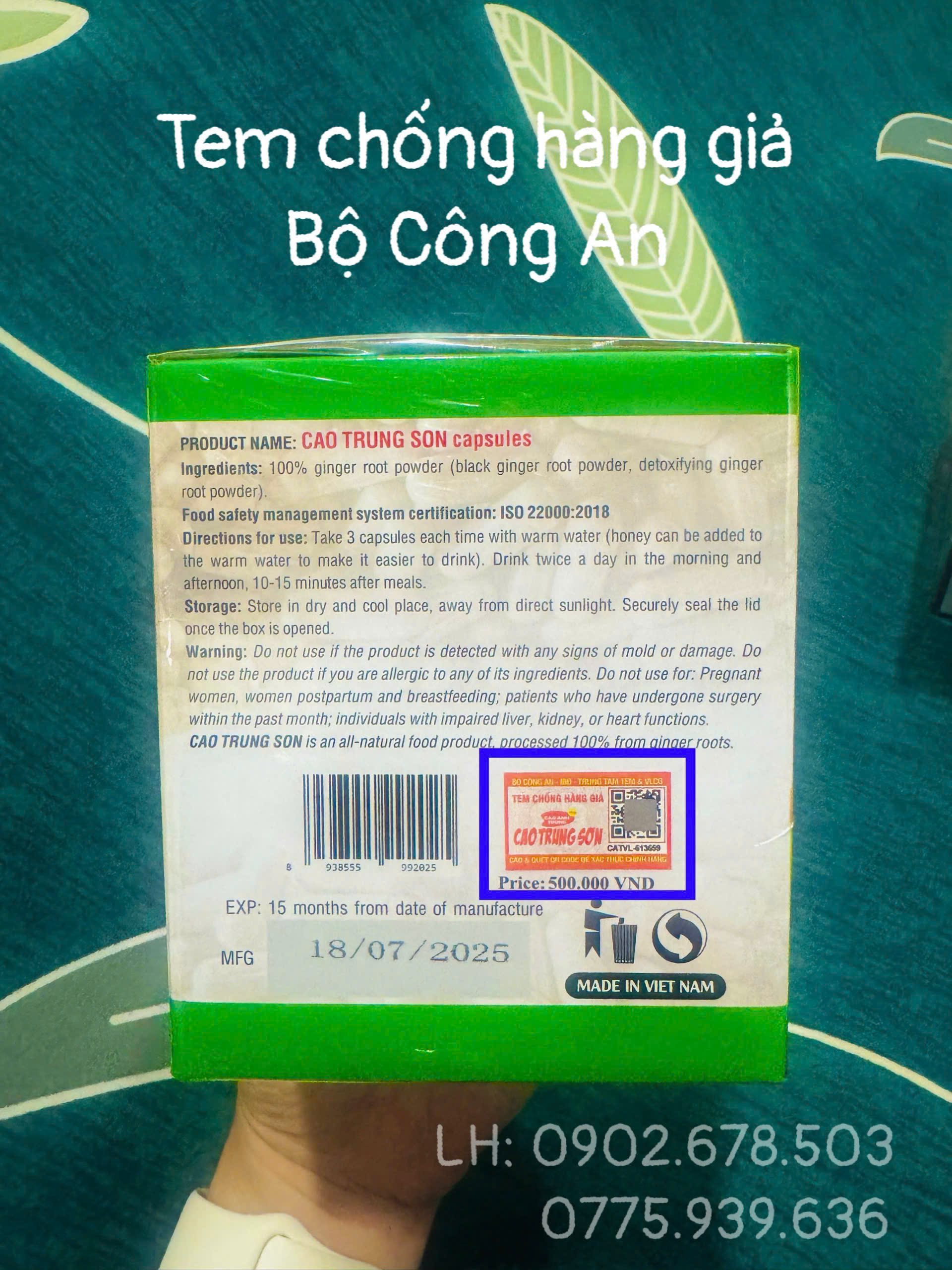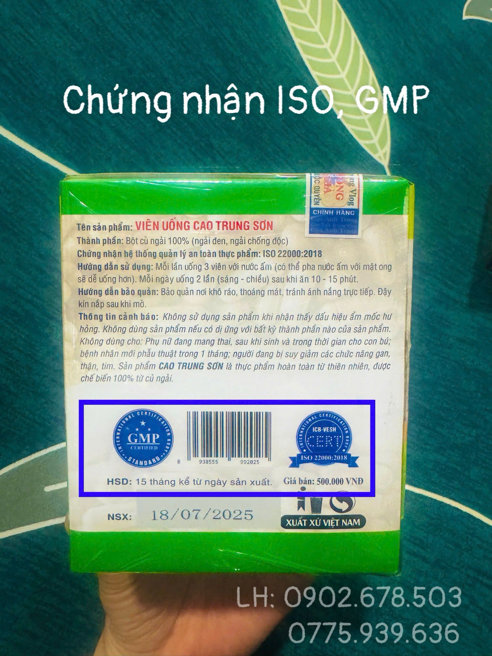 - Ngày sản xuất: in trên bao bì, hạn sử dụng 15 tháng kể từ ngày sản xuất.